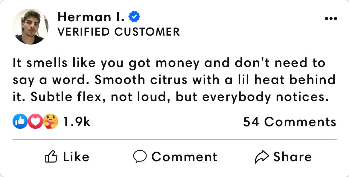 This fragrance redefines freshness with a vibrant burst of grapefruit and aquatic citrus, layered over soft lavender and spiced woods. It dries down into a bold blend of amber, musk, and crisp cedar—leaving behind a scent that’s clean, masculine, and unforgettable.